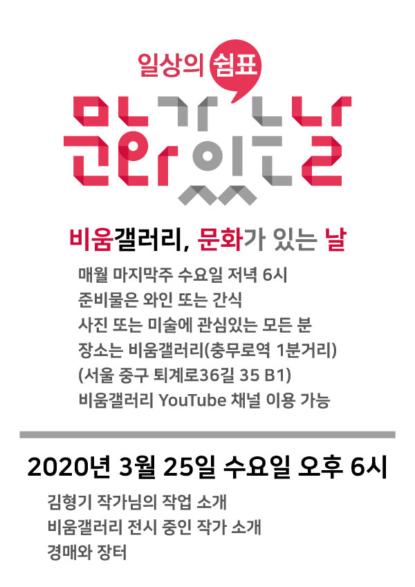 2020년 3월부터 문화가 있는 날 프로그램을 시작합니다.